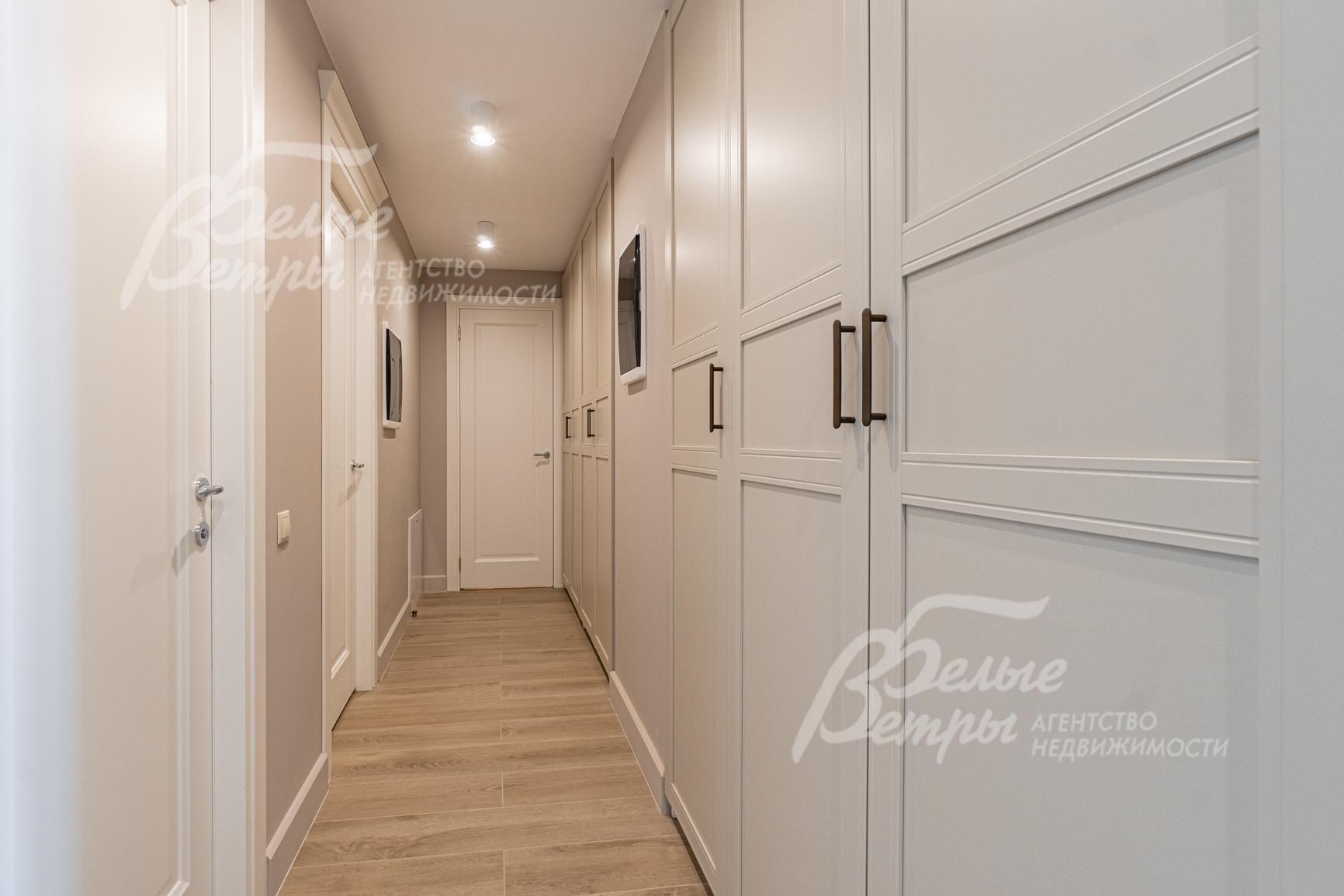 Внутренняя отделка: дизайнерская отделка в современном стиле: комбинированная отделка стен-покраска и вставки из высококачественных обоев, на полу итальянская плитка и инженерная доска. Дубовая лестница. Двери - натуральный шпон. Потолки окрашены, разноуровневые. Встроенные шкафы и гардеробные..
