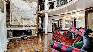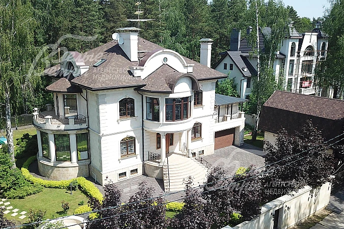 Внутренняя отделка: эксклюзивная отделка премиум-класса во всех деталях. В том числе, колонны, расписанные художником вручную под мрамор. Также паркет из нескольких ценных сортов дерева, с художественным рисунком по авторским эскизам. На стенах обои, лепнина ручной работы, роспись, витражи, рамы в гостиной с инкрустацией. Использованы в отделке элитные сорта деревьев - красный дуб, эбеновое дерево. На полу везде наборный паркет ручной укладки, авторские комбинации. Очень широкий, удобный лестничный марш из ценных пород дерева. Комбинированная отделка потолков: многоуровневые с подсветкой, с богатыми фигурными карнизами в классическом стиле, есть роспись по штукатурке. В доме установлена элитная импортная сантехника (санфаянс). Все коммуникации разведены по дому под ключ, в том числе теплый пол, внутрипольные конвекторы. Межкомнатные двери с резьбой, часть дверей очень высокие, есть арочные - выполнены на заказ из массива дерева с инкрустациями. Бассейн - отдельно стоящее здание. Температура воды, воздуха, влажность - поддерживаются автоматически. Установлены системы автоматической водоочистки. Чаша 12*4 м с противотоком, с подсветкой, глубиной от 2 до 3 м. В помещении теплые полы, панорамные окна в пол (ПВХ Kaleva с раскладкой) раздвижные, с режимом проветривания/ Красивый большой камин с полуколоннами по бокам, с лепниной, обрамлением и площадкой из нескольких сортов мрамора..