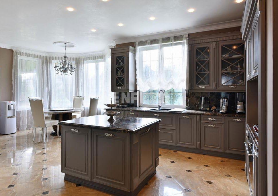 1 этаж: впечатляющий холл с высотой потолков 8 метров, элегантная гостиная с камином, кухня, просторная столовая, кабинет (может использоваться как дополнительная спальня), терраса / зимний сад, домашний кинотеатр, гардеробная, постирочная, гостевой с/у;