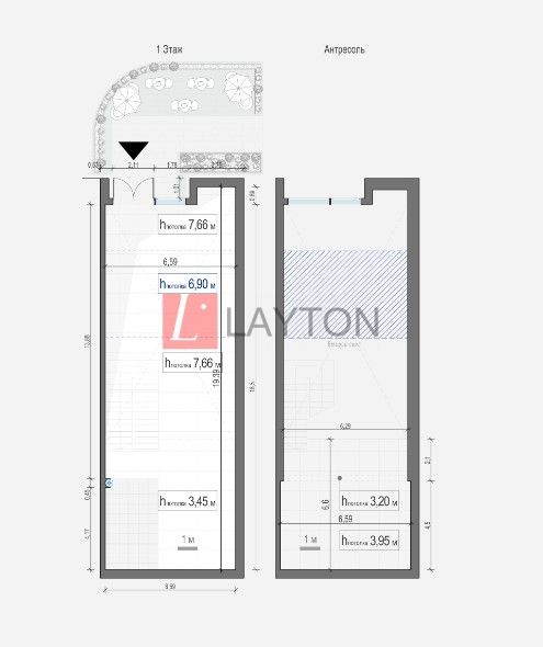 - высота потолков до 5,3 м