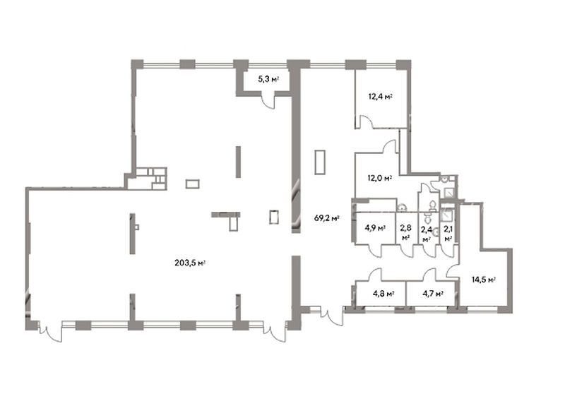 Общая площадь - 386,7кв.м (на 1-м этаже - 186,9 м2; цоколь - 199,8 м2кв.м), планировка зальная, высота потолка 3,9 м на 1 этаже и 2,85м в цоколе, витрины во всему фасаду. Помещения светлые, просторные с хорошим ремонтом. Все коммуникации центральные, электричество - 160кВт. Реклама на фасаде.