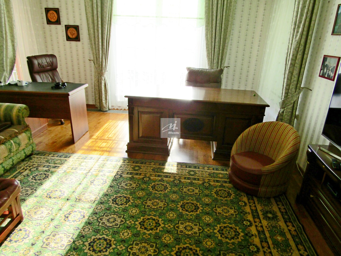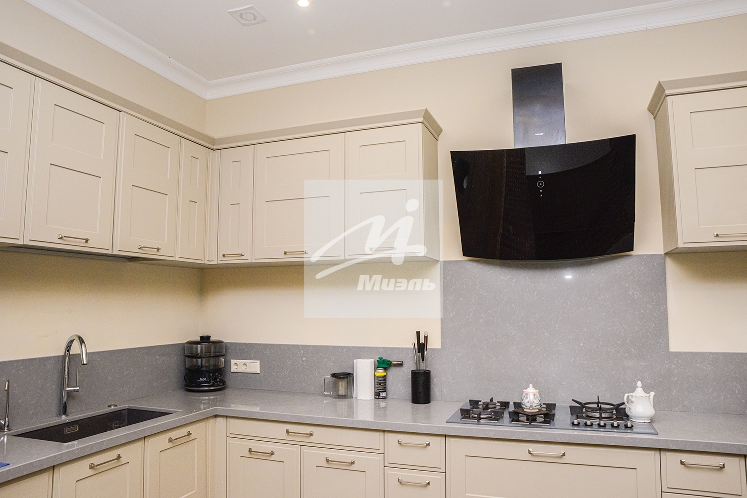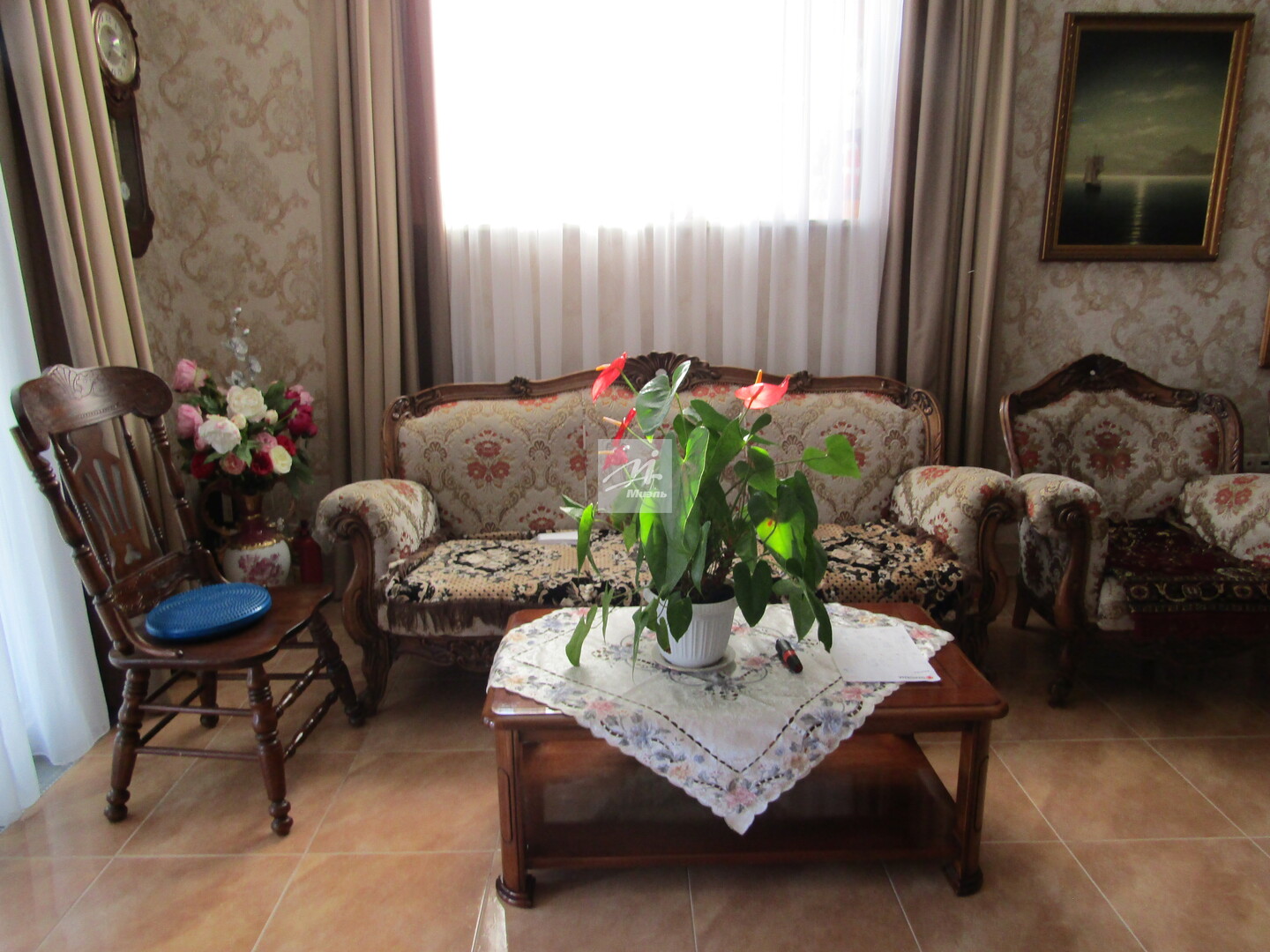 Кухня с современным классическим гарнитуром из массива, большая и светлая гостиная с натуральным дровяным камином, санузлы с качественной сантехникой.
