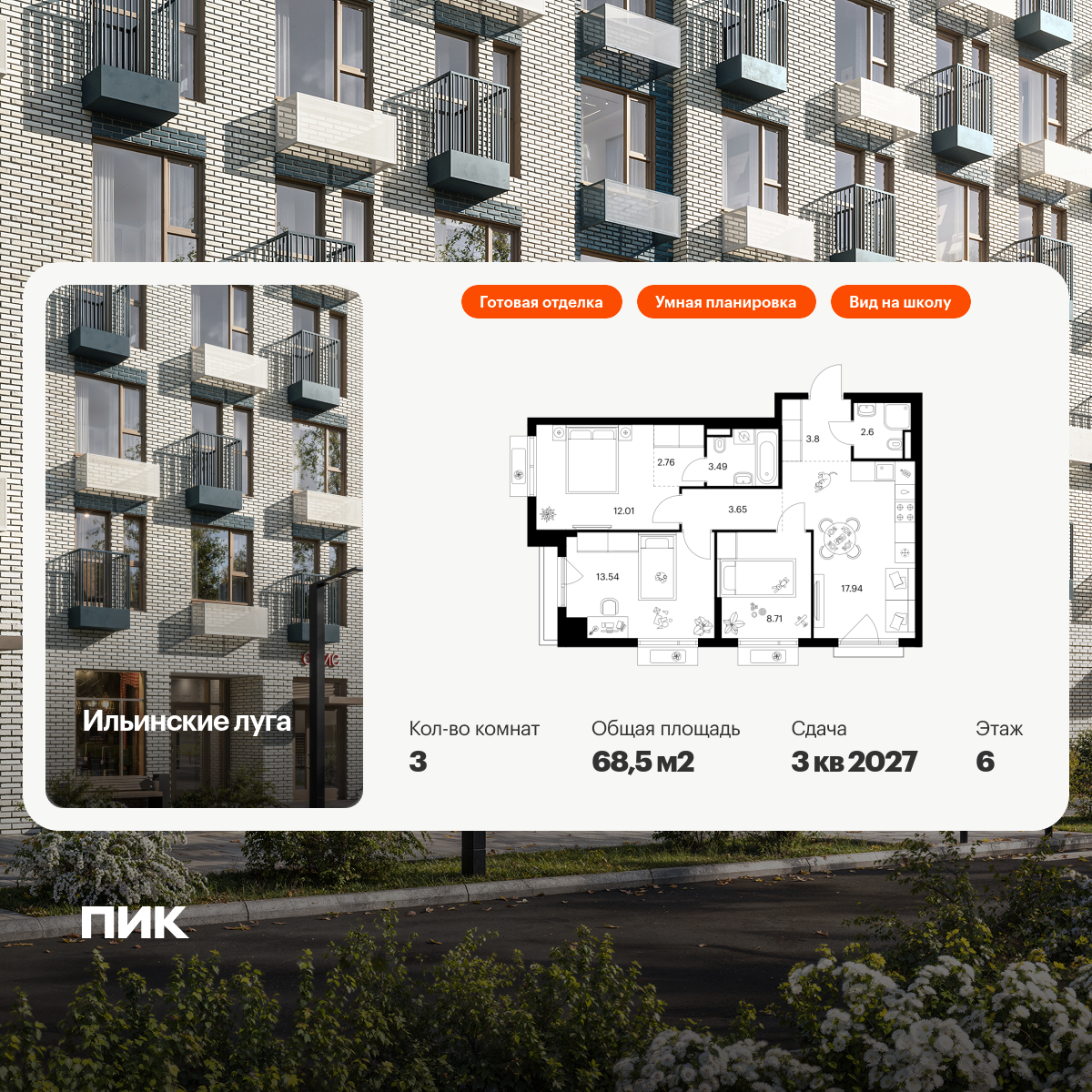 Купить 4к квартиру 79 м² в ЖК Дзен-кварталы