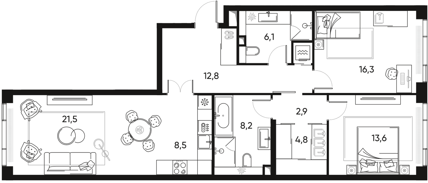 Главная Купить квартиру в Москве и МО 3к квартира 95 м² в ЖК Pride
