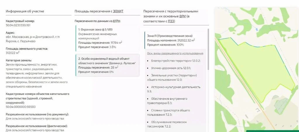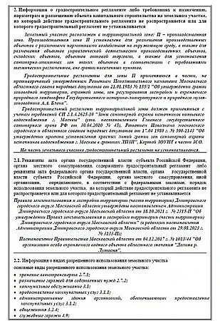 Пересечения с территориальными зонами и их основные ВРИ (в соответствии с ПЗЗ -Зона П (Производственная зона).