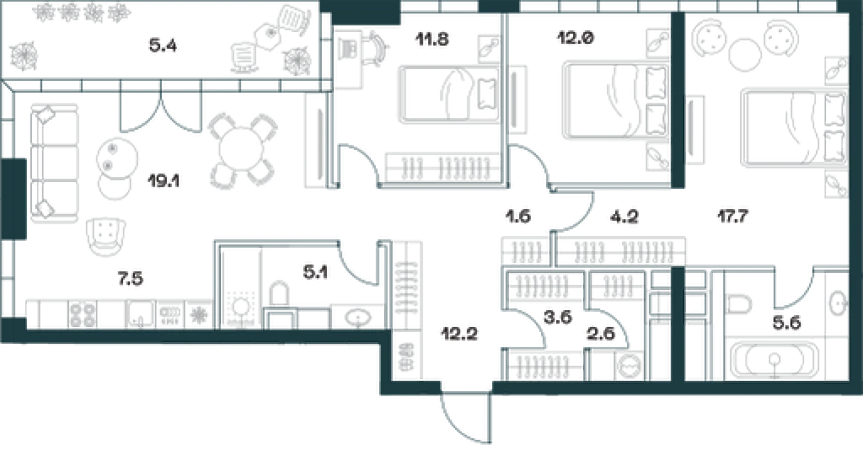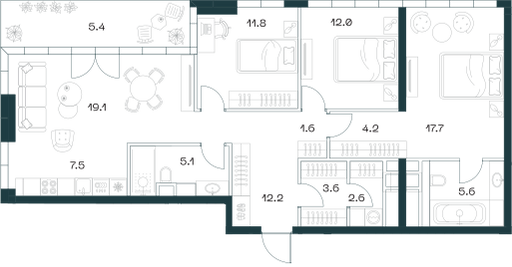 Купить 4к квартиру 106 м² в квартале SHIFT