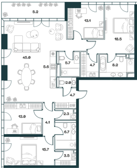 Купить 4к квартиру 133 м² в квартале SHIFT