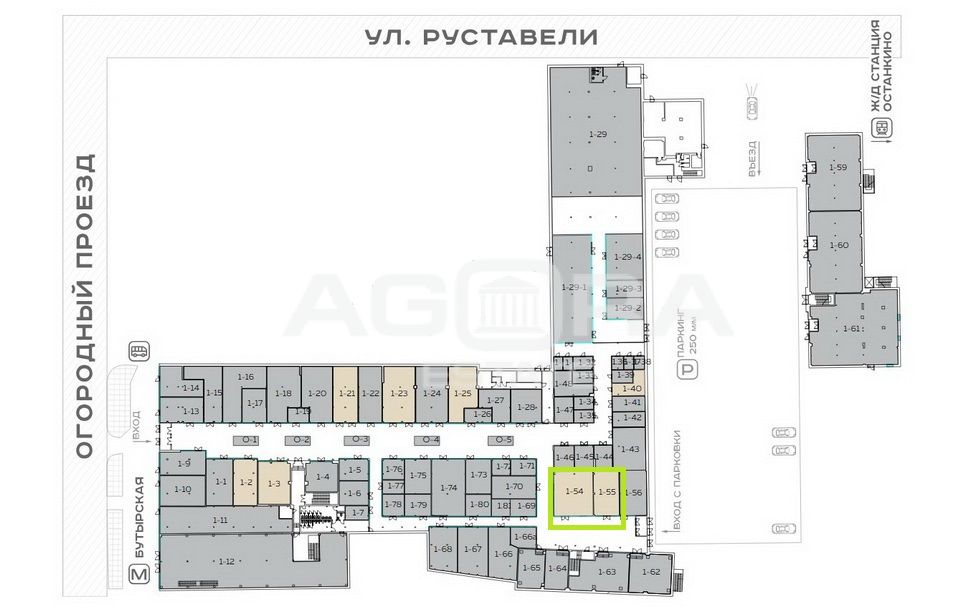 Арендный бизнес. Продажа торгового помещения в Торговом центре, рядом с метро. Помещение общей площадью 153,2 м2 (на плане – объединение блоков 54+55) на 1-ом этаже ТЦ "Зеленый". Высота потолков 4,5 м, планировка открытая, помещение с ремонтом. Помещение хорошо расположено - близко от входа с парковки. Хорошая визуализация - угловое витринное остекление.