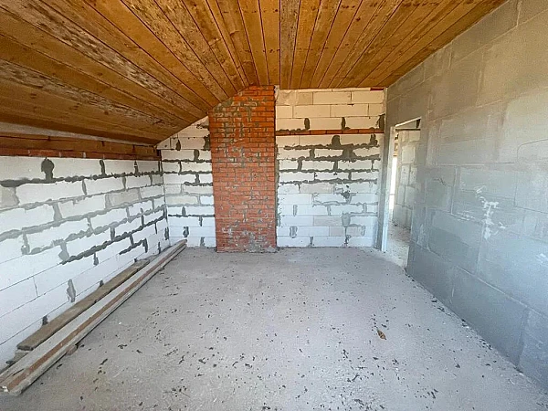Дом двухэтажный, кадастровый номер -50:04:0260305:424. Материал стен - газосиликатные блоки, толщина 45 см, утепление пеноплекс 3 см, облицованы кирпичом. Окна - стеклопакеты двухкамерные, ламинированные. Фундамент - наливные сваи и бетонная плита. Крыша металлочерепица, утеплена (изовер 12 см).