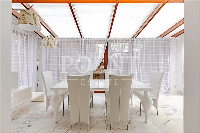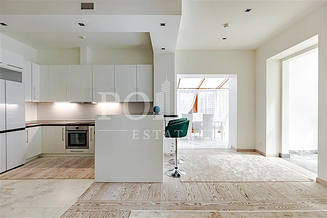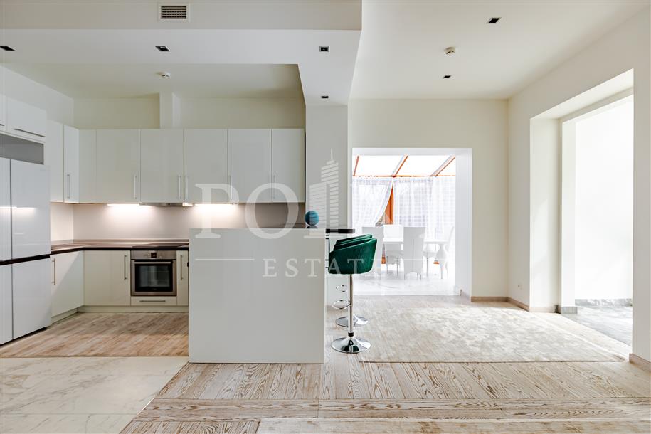 Лот: 112856. Представляем вашему вниманию таунхаус площадью 335 м2, расположенный на участке в 10 соток. На цокольном этаже находятся функциональные помещения, включая гардеробную, кинотеатр для семейных вечеров, кладовую, котельную и постирочную, а также серверную. 1-й этаж начинается с просторной прихожей, которая ведет в светлую гостиную с большими окнами и уютным камином, создающим атмосферу уюта. Здесь также расположены кухня и столовая, санузел, гараж и холл. На 2-ом этаже находится кабинет, спальня с собственным гардеробом и санузлом.Поселок является отличным местом для постоянного проживания, на территории которого раскинулась обширная лесопарковая зона, идеально обустроенная для прогулок и активного отдыха.