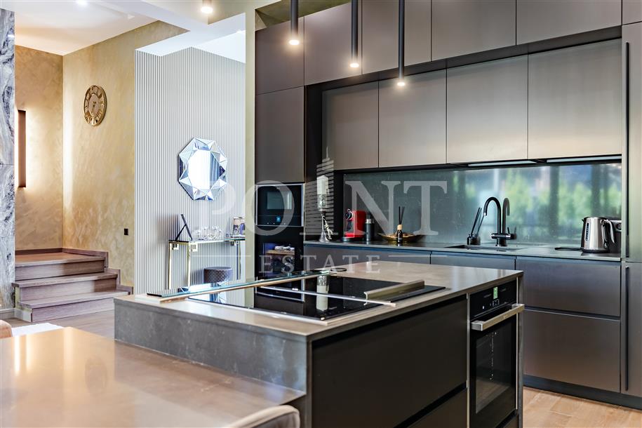 Лот: 112857. Предлагается к продаже стильный таунхаус площадью 170 м2 на участке 2 сотки, расположенный в охраняемом коттеджном поселке "Футуро Парк". Таунхаус полностью готов к проживанию. Выполнен дорогой дизайнерский ремонт в современном стиле с использованием высококлассной мебели, тщательно подобранных аксессуаров и современной техники от ведущих мировых производителей. Комфортная планировка. На первом этаже находится гостиная с камином, кухня, объединенная с обеденной зоной, столовая, санузел, гардеробная, бойлерная, выход на террасу. Второй этаж занимают две спальни с индивидуальными гардеробными и санузлами. Третий этаж представляет собой открытую террасу с панорамным видом. К услугам жителей поселка парковая зона с прудом и пляжем, ресторан с прекрасными видовыми пейзажами на озеро, школа, детский сад, фитнес-комплекс с аква-зоной.