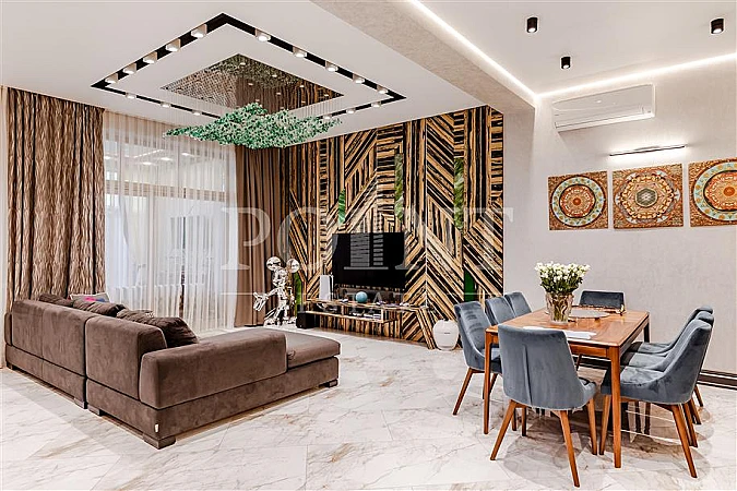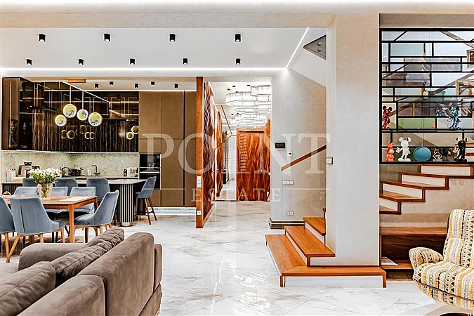 Лот: 112859. Стильный таунхаус с дорогим дизайнерским ремонтом в премиальном коттеджном поселке "Парк Авеню". Таунхаус занимает три этажа и является самым большим по площади в поселке - 410 кв.м, предлагая просторные и функциональные помещения для комфортного проживания. Внутреннее пространство гармонично соединившее в себе эстетику и функциональность, оформлено в современном стиле с использованием высококачественных материалов. Таунхаус полностью меблирован и оборудован всей необходимой мебелью и техникой от ведущих мировых производителей. Придомовая территория 4,5 сотки озеленена и скрыта от посторонних глаз высокими туями. Имеется парковка для двух автомобилей. В распоряжении жителей находятся инфраструктура и зоны отдыха близлежащих поселков Villagio Estate.