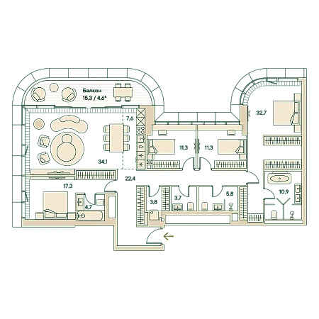 Купить 4к квартиру 168 м² в ЖК Villa Grace