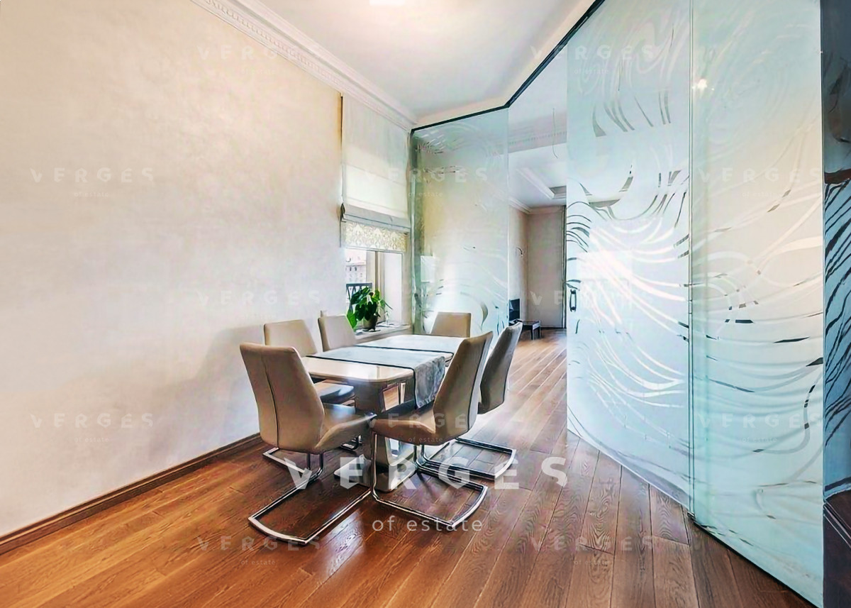 Просторная 4-комнатная квартира с роскошными видами, площадью 168,3 кв. м., с дизайнерской отделкой. По задумке архитекторов имеется внушительных размеров кухня - гостиная, комфортабельный мастер - блок, где можно спокойно отдохнуть после тяжелого рабочего дня со всеми удобствами, не отвлекаясь на суету мегаполиса, две детские спальни, 2 санузла, гардеробная, высокие потолки 3.9 м.