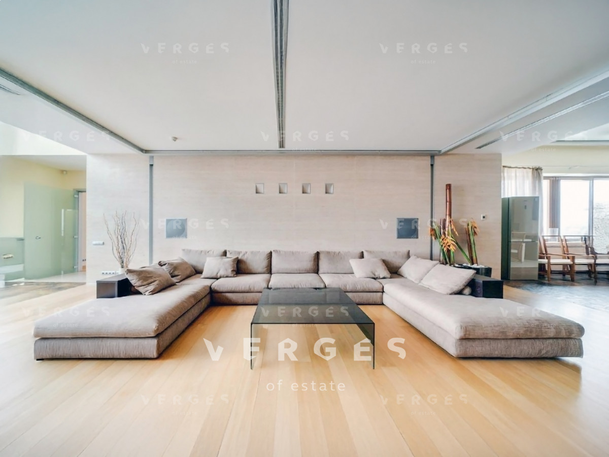 Вашему вниманию представляется двухуровневый пятикомнатный пентхаус с дизайнерским ремонтом площадью 279 кв. м. плюс терраса 70 метров, расположенный в жилом комплексе Polyanka Plaza . В планировку обоих уровней входят: две внушительных размеров гостиных, кухня - столовая, отдельная кухня у террасы на втором уровне, две спальни, где можно спокойно отдохнуть после тяжелого рабочего дня со всеми удобствами, не отвлекаясь на суету мегаполиса, у каждой спальни есть собственный санузел, имеется постирочная и просторная терраса, открывающая панорамная виды на город, высокие потолки 3.1 м.. Интерьер квартиры богат светлыми тонами, что делает квартиру еще более просторной и уютной. В отделке использованы ценные породы дерева и натуральный камень. Мебель и элементы декора выполнены на заказ. Имеется машиноместо на подземном паркинге.