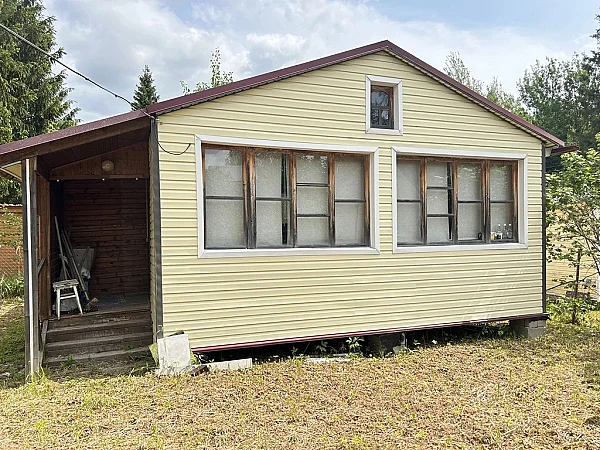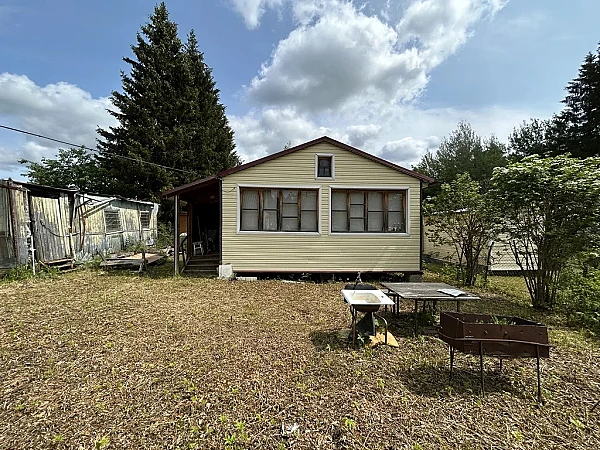 Второй дом -30,86 кв.м.- каркасный, обшит сайдингом, крыша металлочерепица, окна дерево. Очень удобная планировка дома! На первом этаже терраса с кухней-15,33 кв.м, комната-11,95 кв.м., с/у-3,58 кв.м., крыльцо-2,44 кв.м. Санузел с душевой кабиной, раковиной и бойлером.