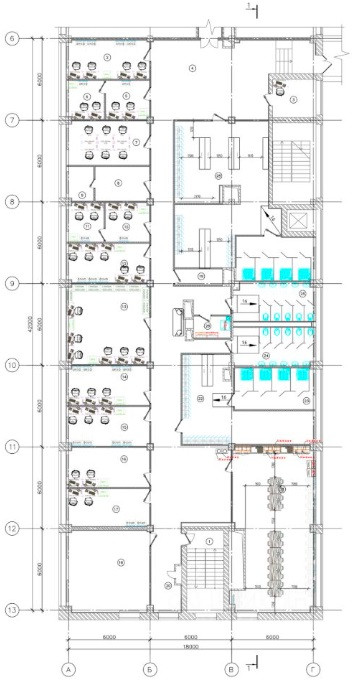 Административно-бытовой блок АБК 685 кв.м. , примыкает к производственно-складскому блоку (расположен в офисном здании) :