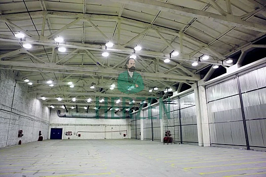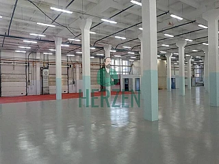 Ровный бетонный пол с антипылевым покрытием. Допустимая нагрузка 5 т/м2.
