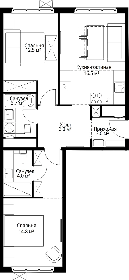 Купить 2к квартиру 57 м² в ЖК Новая Алексеевская роща