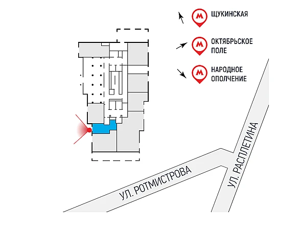 Предлагается в аренду торговое помещение площадью 27,1 кв.м от Застройщикана 1 этаже премиального жилого комплекса "Театральный квартал", по адресу: Москва, СЗАО, Щукино, ул. Ротмистрова, 2 (строительный к.4, Дом "Фомин") Срок ввода 4 квартал. 2025г.