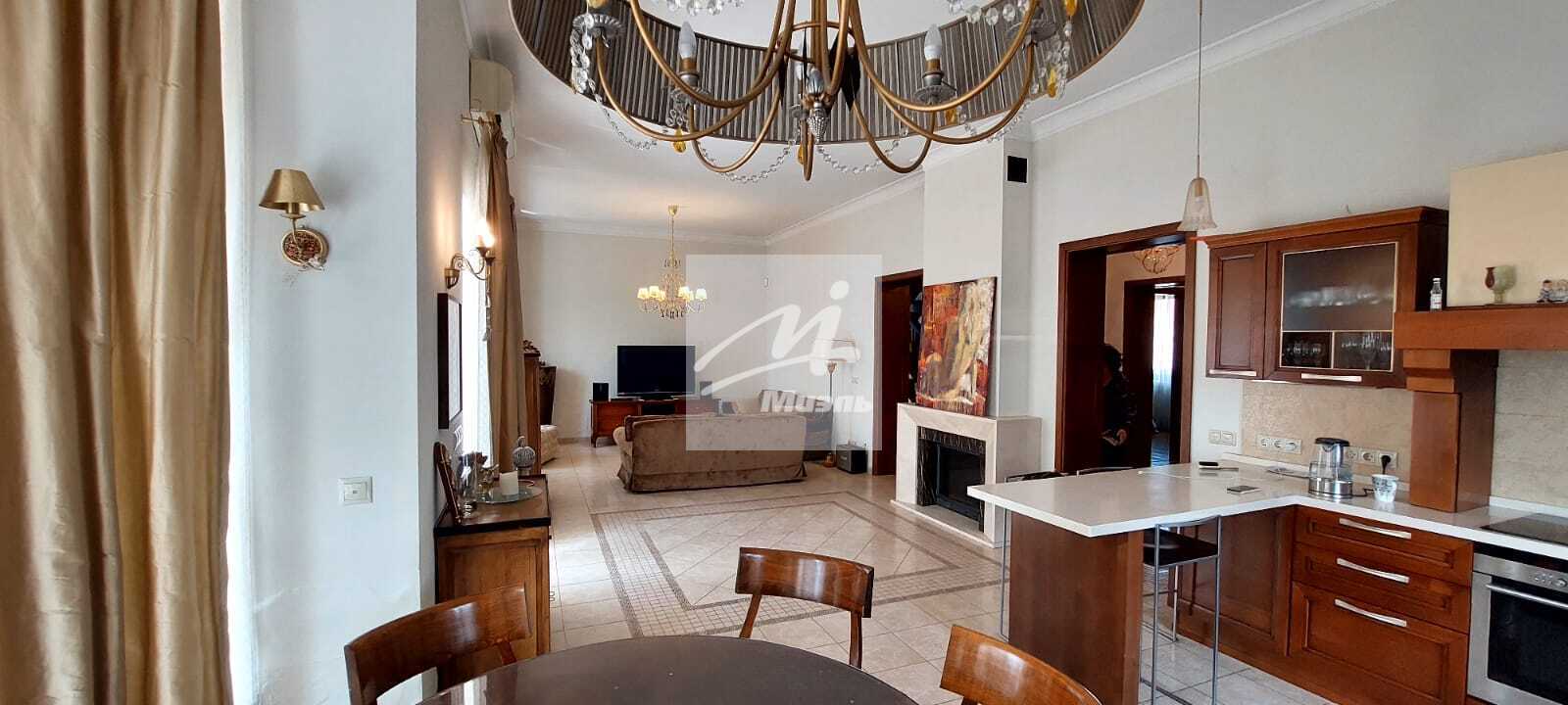 Внутренняя отделка премиум класса, все двери и фурнитура, мебель и лампы из Италии и Франции под старину, паркет – массив доски из ореха и дуба.