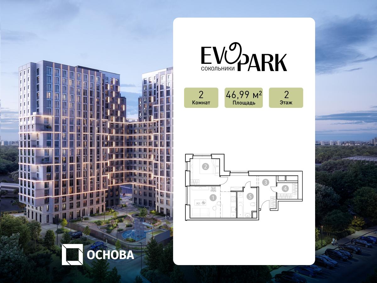 Продаются 2-к апартаменты площадью 46.99 кв.м. на 2-м этаже 20 этажного дома в EVOPARK Сокольники от ГК ОСНОВА.