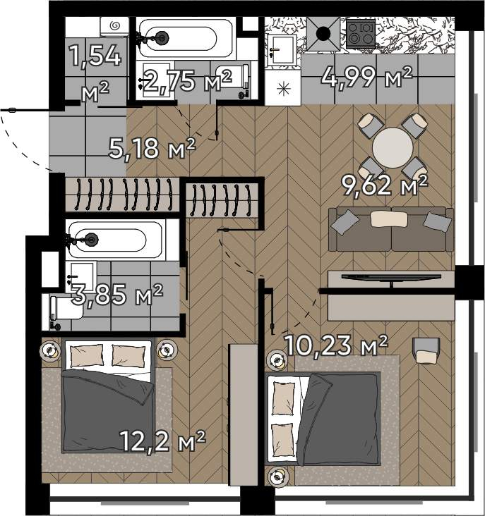 Продаются 2-к апартаменты площадью 62.5 кв.м. на 8-м этаже 28 этажного дома в "ЭМОУШН" от ГК ОСНОВА