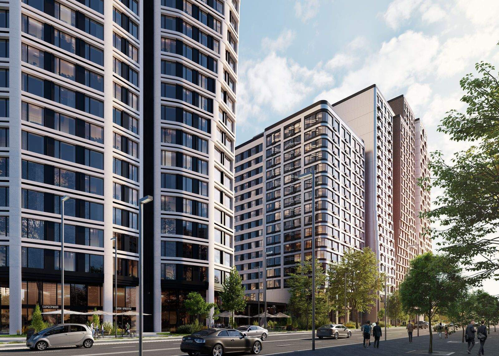 В составе комплекса — собственный СПА-центр с открытым всесезонным бассейном, офисный центр с конференц-залом и амфитеатром, коворкинг, двухуровневый подземный паркинг, кафе и ресторан, аптеки и супермаркет, а также приватные пространства для резидентов: досуг, красота и здоровье, частные и детские мероприятия. Дополняют концепцию авторское благоустройство, прогулочные зоны, фонтан, скульптуры.