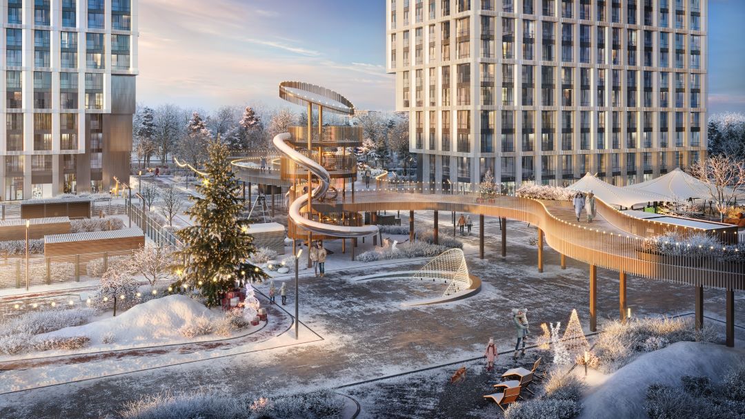 В составе комплекса — собственный СПА-центр с открытым всесезонным бассейном, офисный центр с конференц-залом и амфитеатром, коворкинг, двухуровневый подземный паркинг, кафе и ресторан, аптеки и супермаркет, а также приватные пространства для резидентов: досуг, красота и здоровье, частные и детские мероприятия. Дополняют концепцию авторское благоустройство, прогулочные зоны, фонтан, скульптуры.