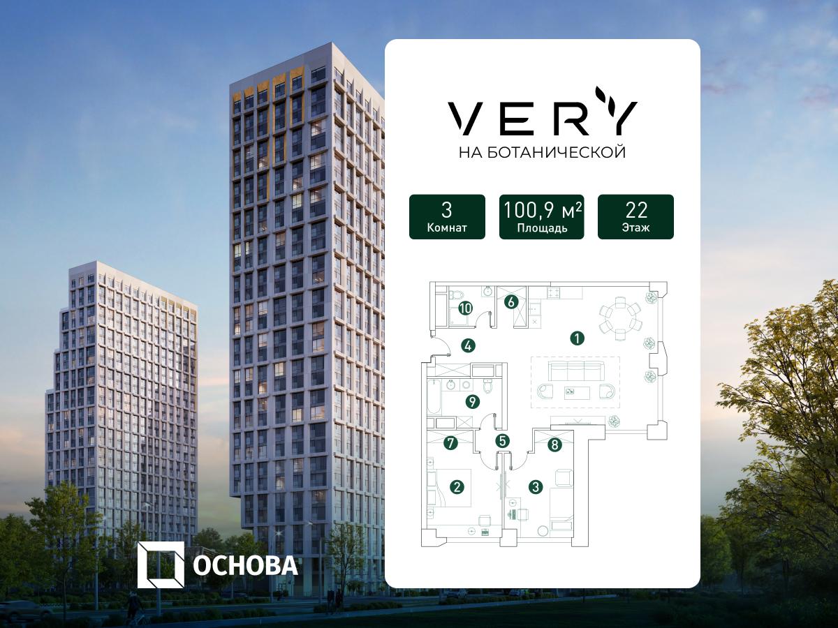 Продаются 3-к апартаменты площадью 100.7 кв.м. на 5-м этаже 28 этажного дома в "ЭМОУШН" от ГК ОСНОВА