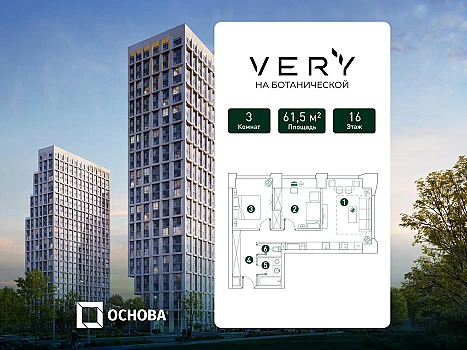 Продаются 2-к апартаменты площадью 62.3 кв.м. на 11-м этаже 28 этажного дома в "Emotion" от ГК ОСНОВА