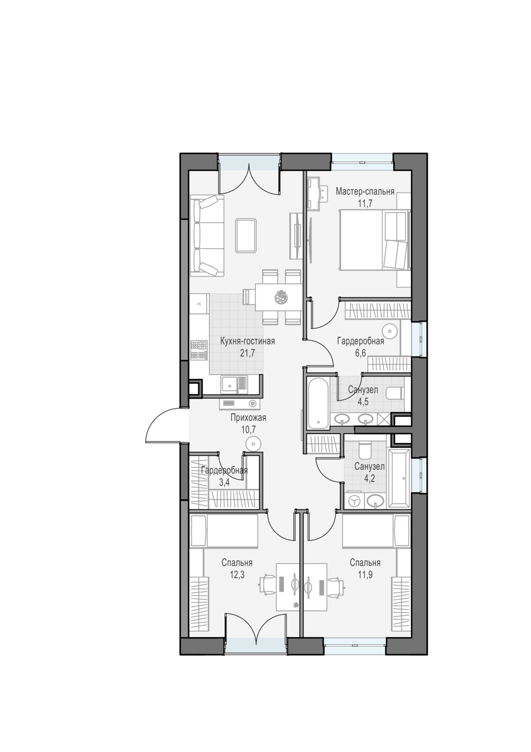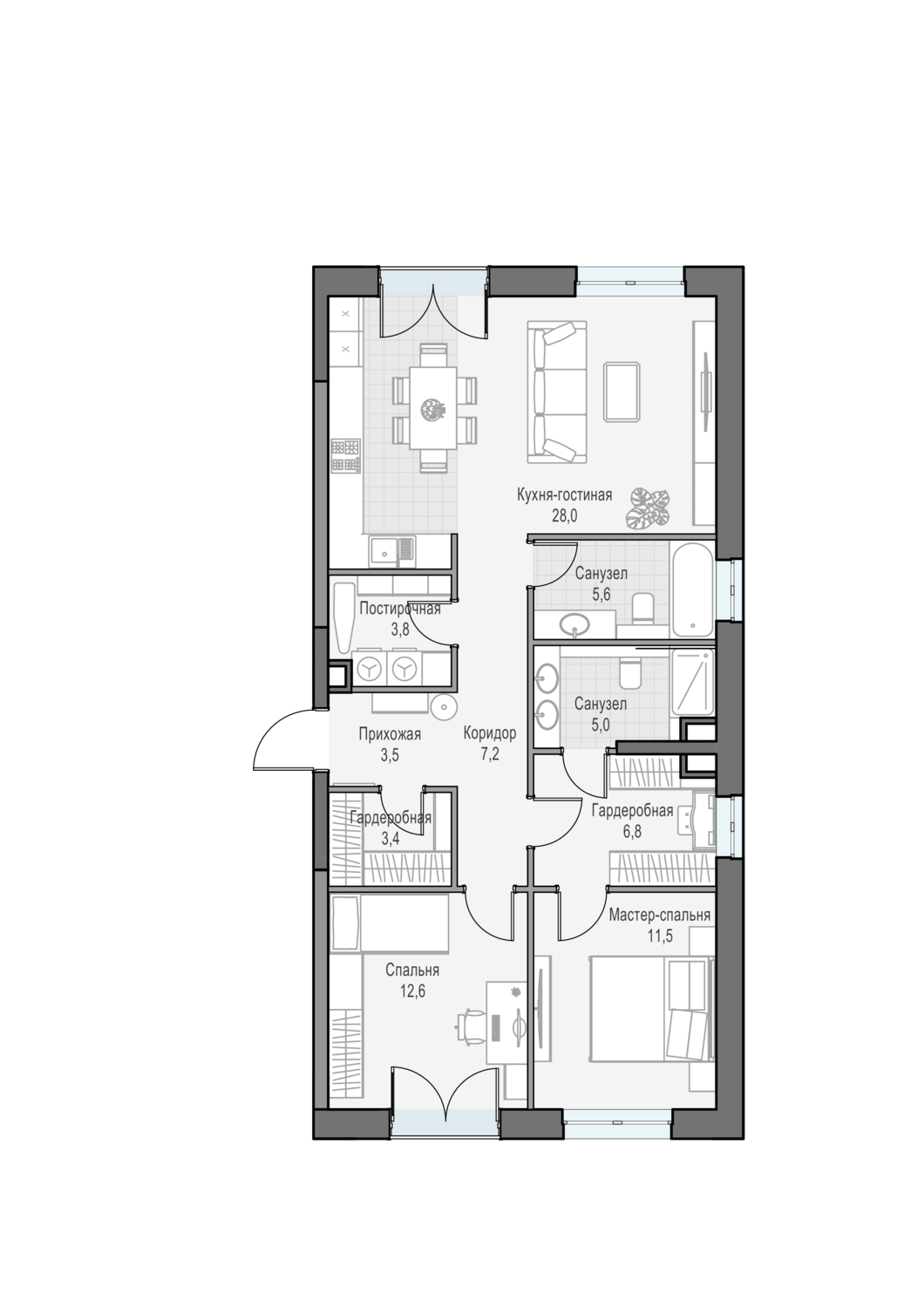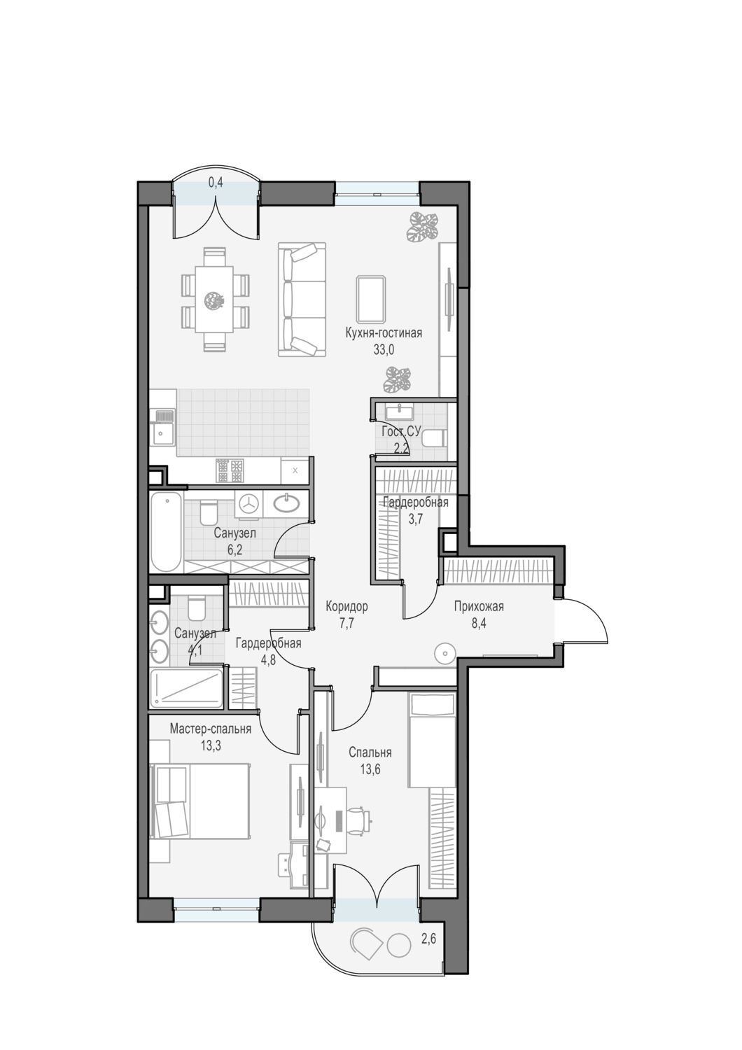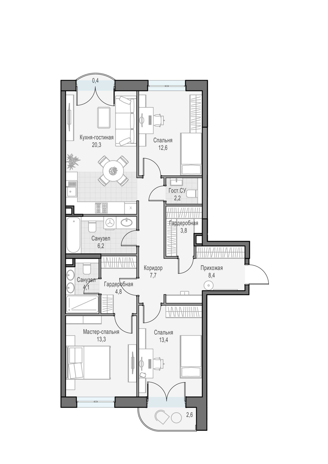 Продаются 4-к апартаменты площадью 85.7 кв.м. на 6-м этаже 28 этажного дома в "ЭМОУШН" от ГК ОСНОВА