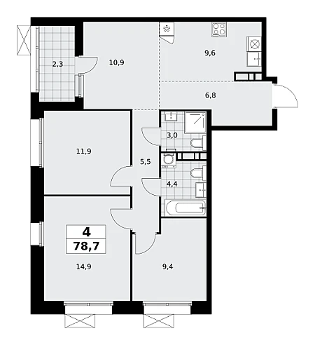 Продаются 3-к апартаменты площадью 69.3 кв.м. на 2-м этаже 28 этажного дома в "Emotion" от ГК ОСНОВА