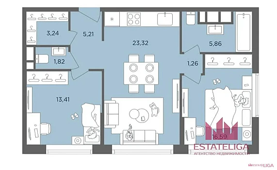 Продаются 3-к апартаменты площадью 80.8 кв.м. на 5-м этаже 28 этажного дома в "Emotion" от ГК ОСНОВА