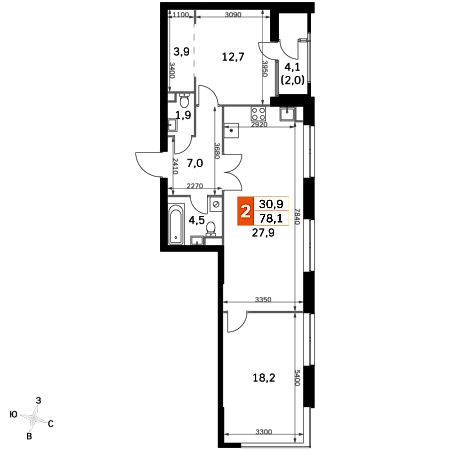 Продаются 3-к апартаменты площадью 80.8 кв.м. на 4-м этаже 28 этажного дома в "Emotion" от ГК ОСНОВА