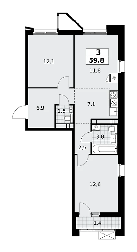 Купить 2к квартиру 77 м² в МФК Nametkin Tower (Наметкин Тауэр)
