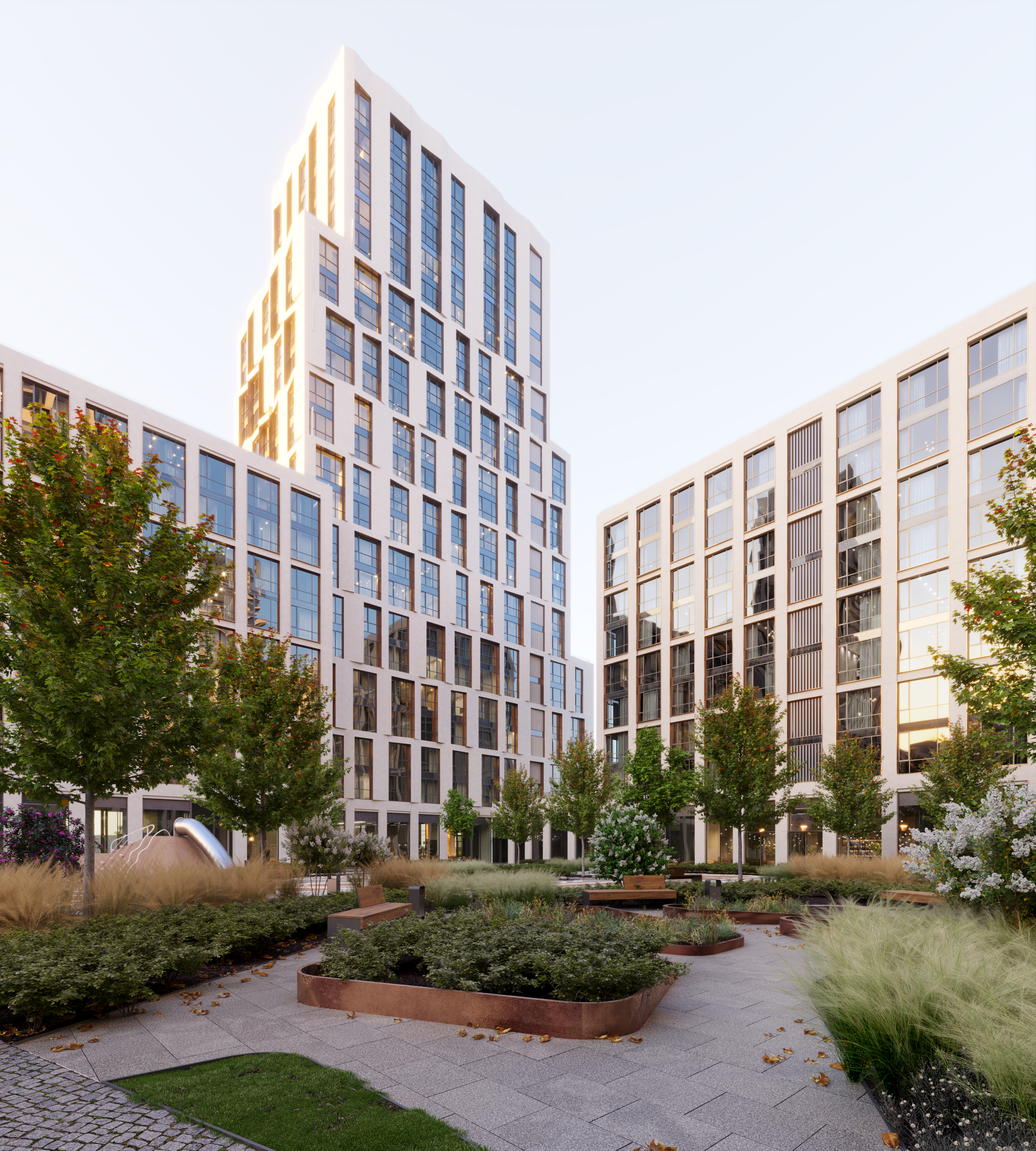 Уникальная особенность Наметкин Тауэр — “небесный этаж”: приватная досуговая зона для жителей на 25 этаже с выходом на террасы. Здесь будут доступны лаунж-зона, зона для спорта, площадка для детских игр, хобби-комната и зал для мероприятий. Также предусмотрены общественная гостиная с функциями коворкинга и бара, многоцелевой спортивный зал, теннисные и бильярдные столы. Исключительность приватных зон дополняют панорамные виды на Москву.
