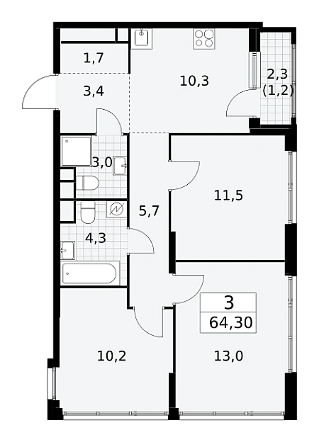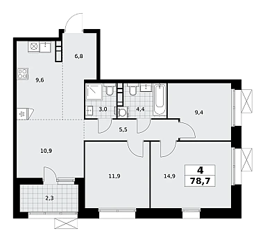 Купить 2к квартиру 67 м² в МФК Nametkin Tower (Наметкин Тауэр)