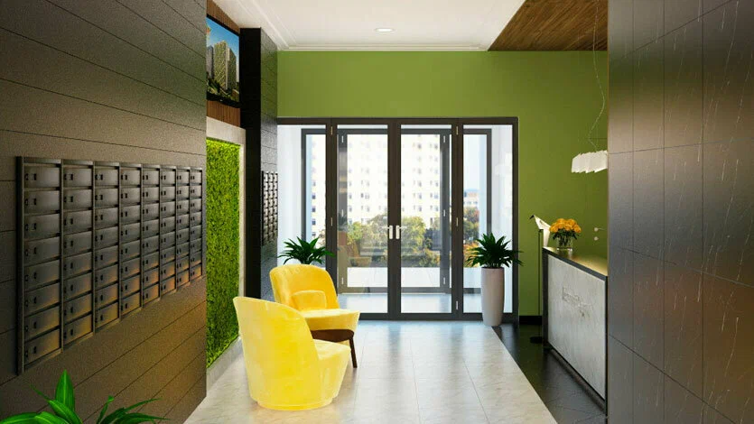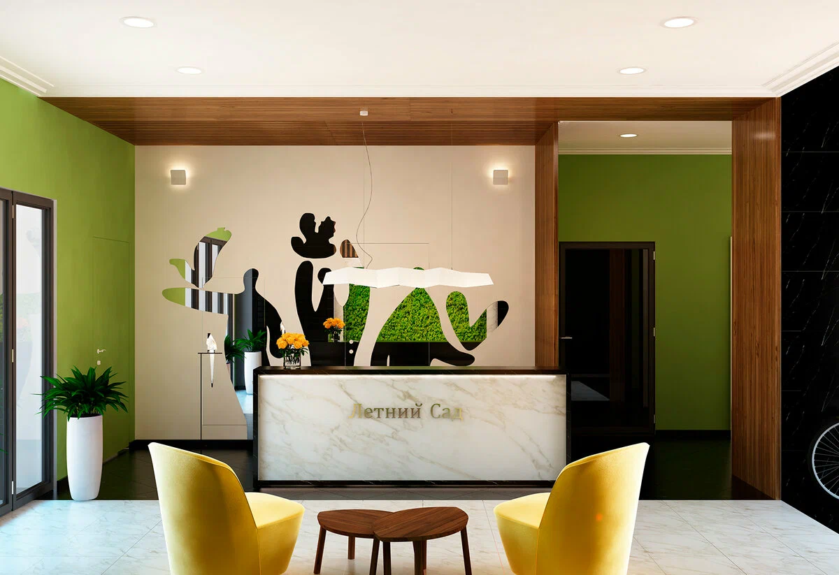 В каждой секции запроектированы дизайнерские лобби, консьерж-сервисом 24/7, колясочными, комнатами для матери и ребёнка и гостевыми санузлами.