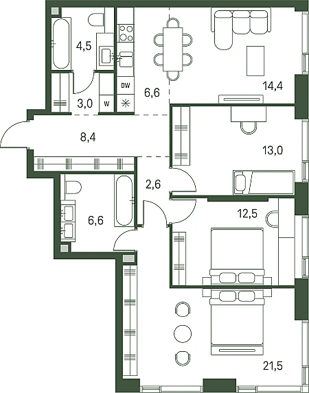 Купить 4к квартиру 85 м² в ЖК Very на Ботанической