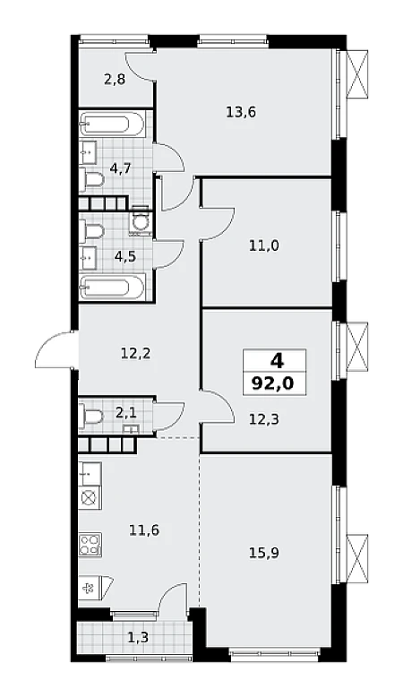Продается 4-к квартира площадью 91.3 кв.м. на 7-м этаже 31 этажного дома в ЖК "Very" от ГК ОСНОВА.