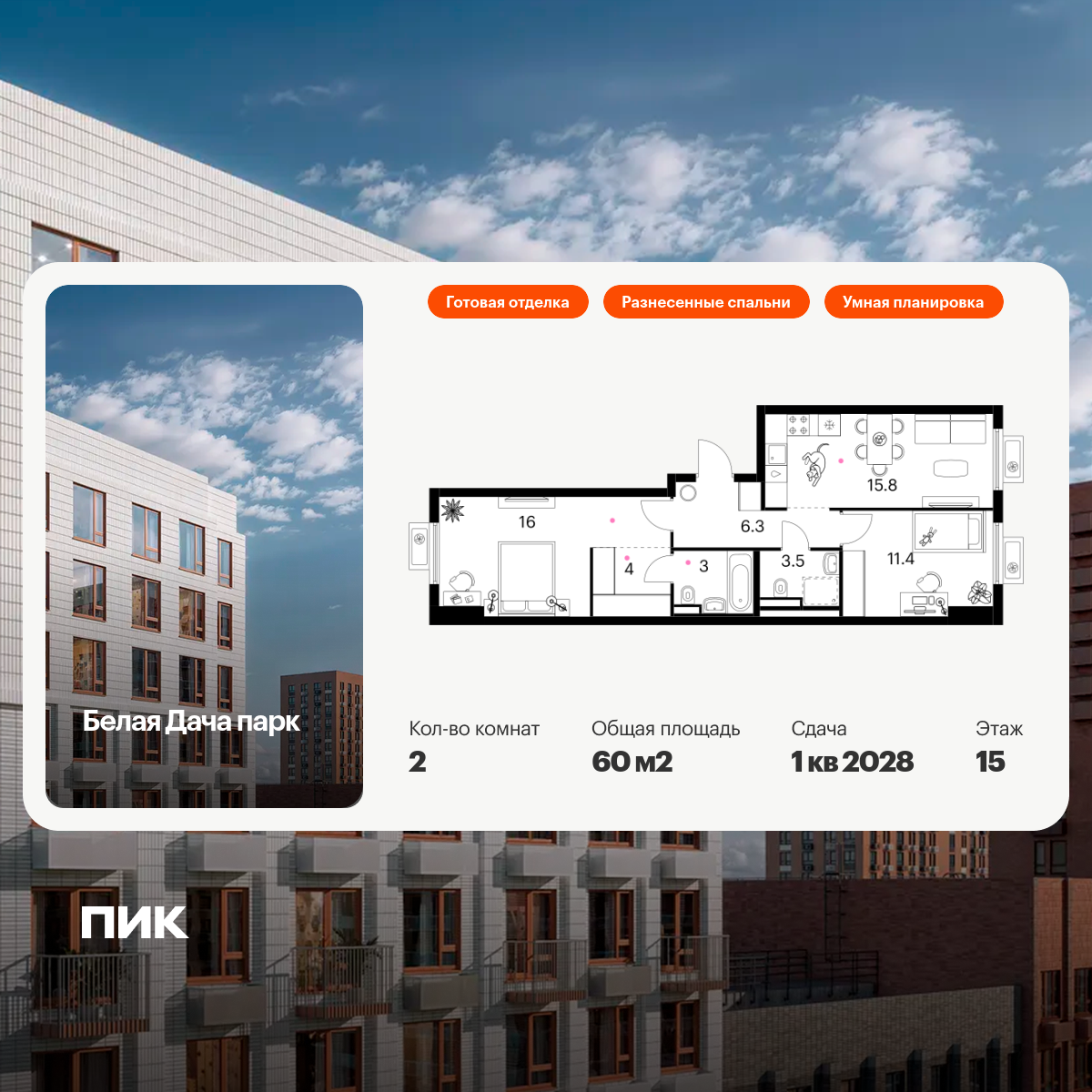 Купить 2к квартиру 64 м² в ЖК ФизтехСити