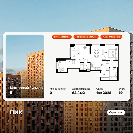 Купить 3к квартиру 69 м² в ЖК Мираполис