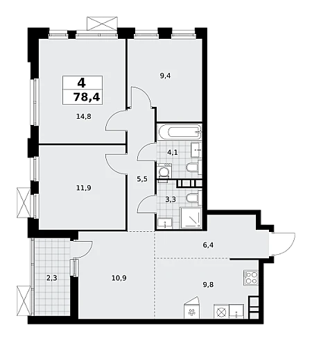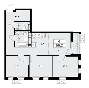 Продаются 1-к апартаменты площадью 79.6 кв.м. на 3-м этаже 33 этажного дома в ЖК "Мираполис" от ГК ОСНОВА.