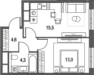 Продаются 1-к апартаменты площадью 58.3 кв.м. на 3-м этаже 33 этажного дома в ЖК "Мираполис" от ГК ОСНОВА.