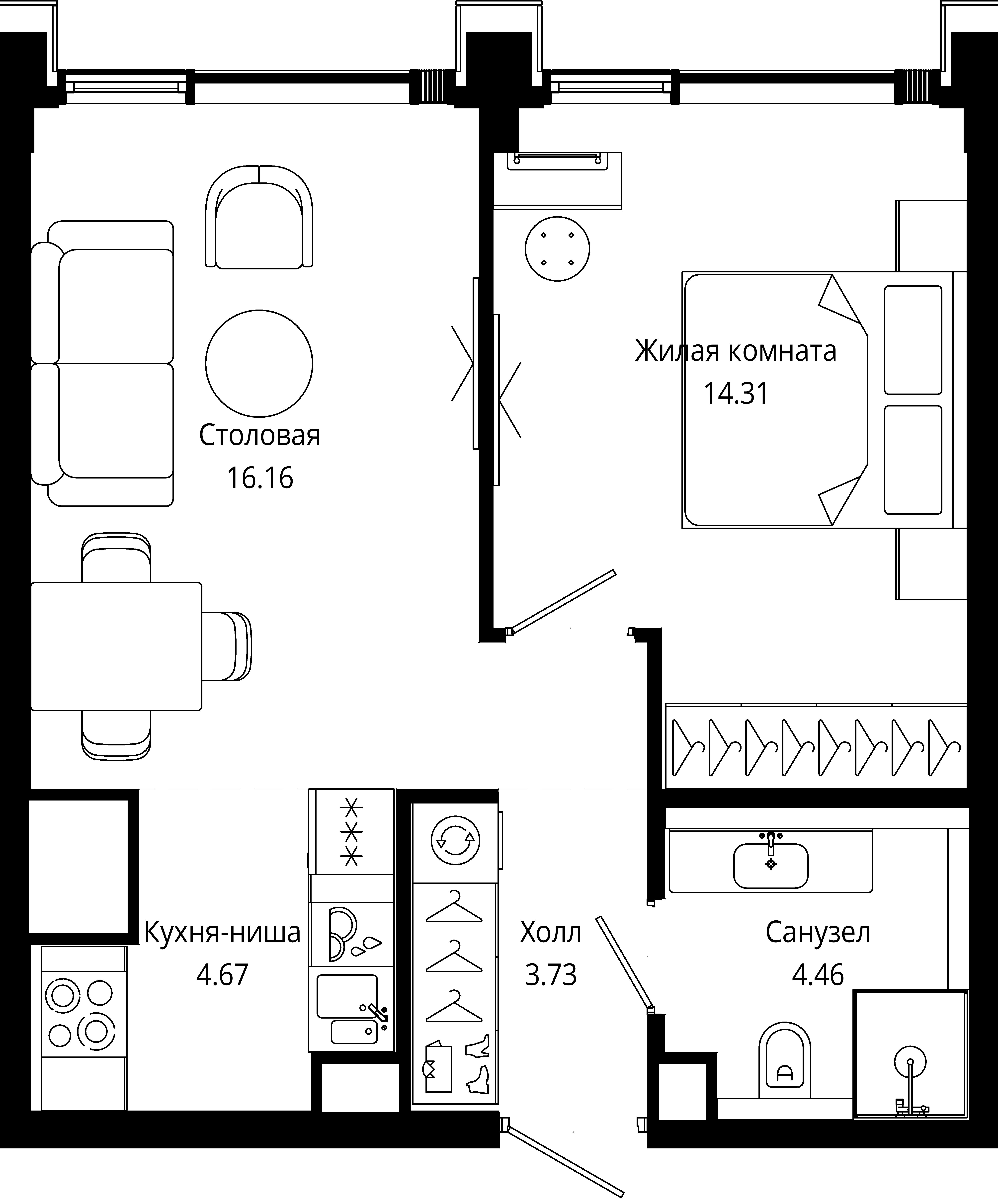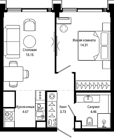 Купить 1к квартиру 43 м² в ЖК MOD (Мод)