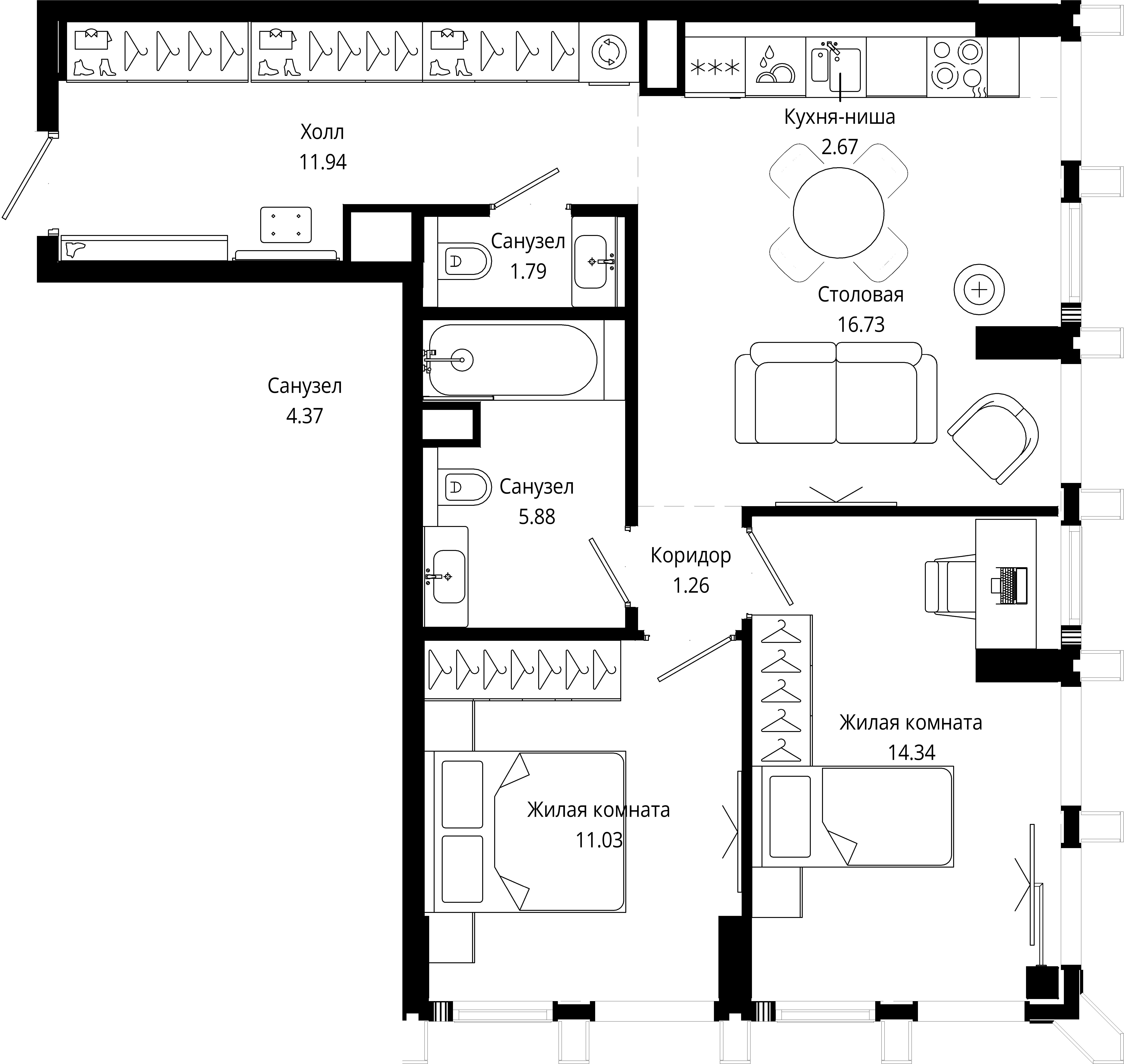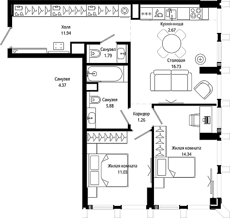 Купить 2к квартиру 65 м² в ЖК MOD (Мод)