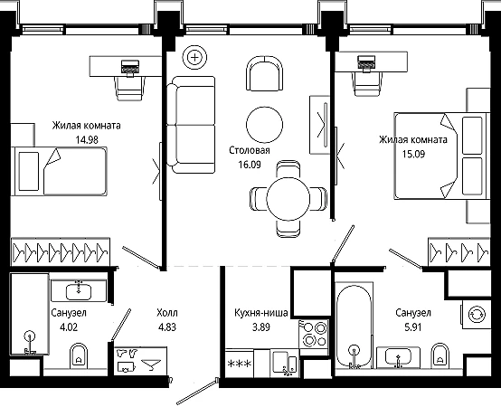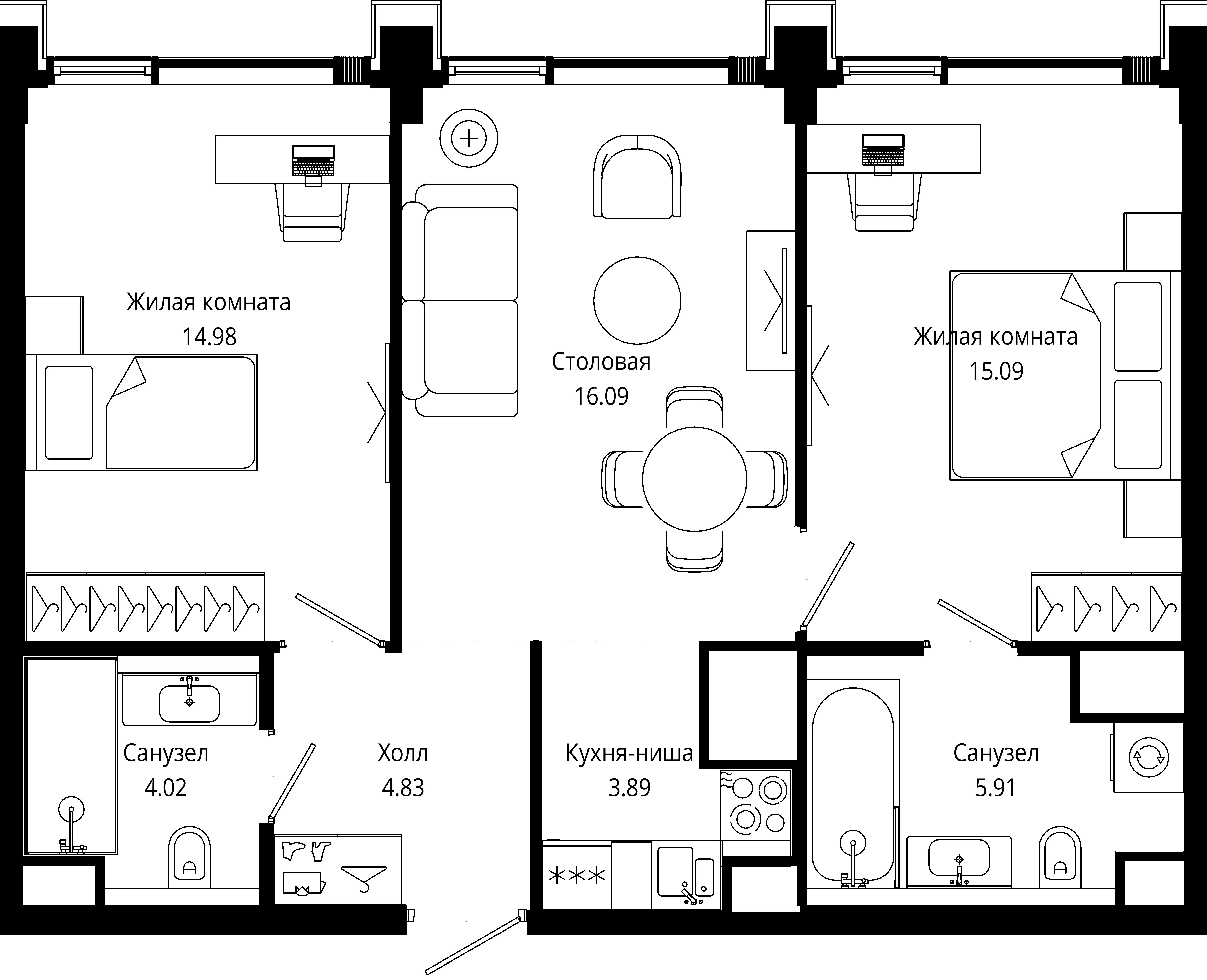 Купить 2к квартиру 64 м² в ЖК MOD (Мод)