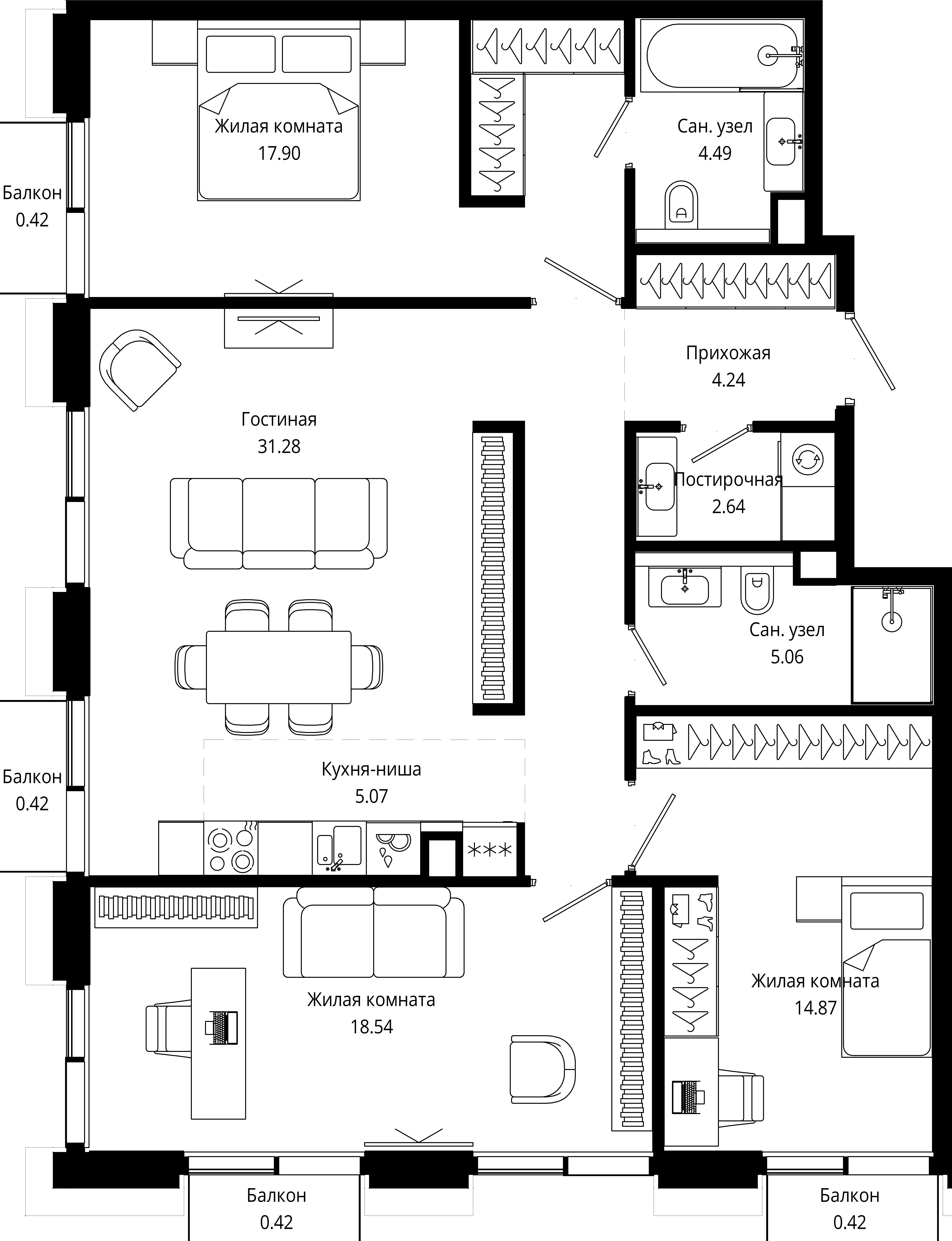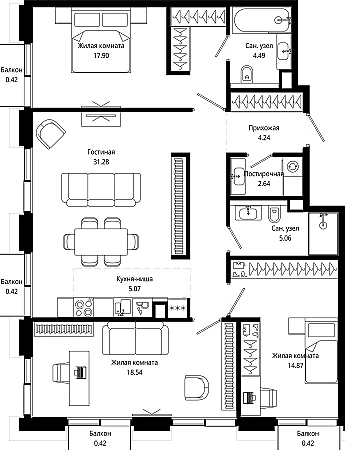 Купить 3к квартиру 105 м² в ЖК MOD (Мод)