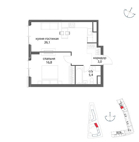 Купить 1к квартиру 43 м² в ЖК MOD (Мод)